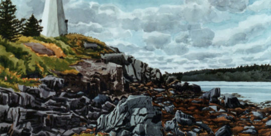 admin2018-08-29T22:16:25-04:00Swallow Tail Lighthouse - Grand Manan Island, New Brunswick 15 x 22 inches Four hours is the time I had to paint this picture of the famous Swallow Tail Lighthouse. We had to catch the last ferry to take us back to the mainland.