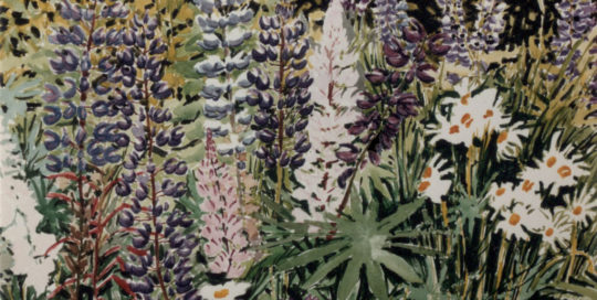 admin2018-08-29T22:26:30-04:00Lupins and Daisies 15 x 22 inches This is a close-up painting of the beautiful lupins that are found throughout the Province of New Brunswick, along with a smattering of daisies.