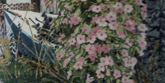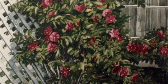 admin2018-09-25T22:01:13-04:00My Wife's Favourite 15 x 22 inches This rose bush grew outside of Betty Cunninghams home in St. Andrews by-the-Sea. I rented a room at Betty's home for the summers I went painting out East.